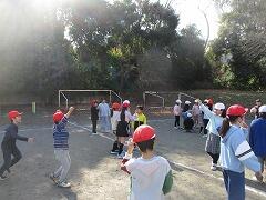 外で遊ぶことが大好きな子どもたちですが、全員が毎日外で遊んでいるわけではありません。体づくりのために全員で運動するという習慣は学校において大切なことです。