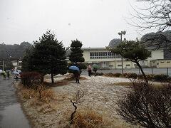 3月8日、雪でのスタートでした。朝のうちにやんだので、大きな混乱なく学校は始まりました。