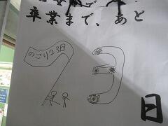 静まりかえった教室に足を踏み入れてみると、金曜日の卒業式の雰囲気そのままの黒板がありました。でも当たり前ですが子どもたちはいません。
