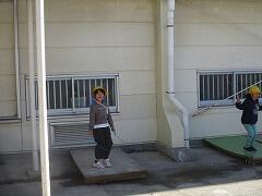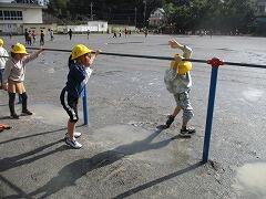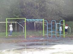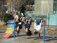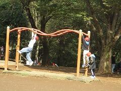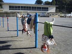 着地の場所に水が溜まっている鉄棒で器用に遊んでいる子たちがいました。