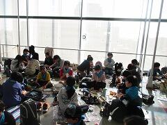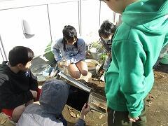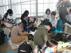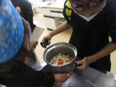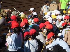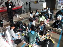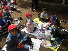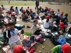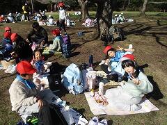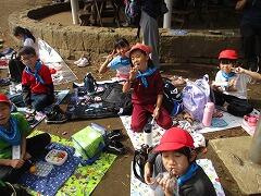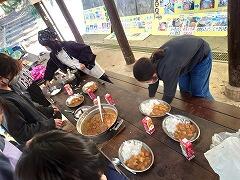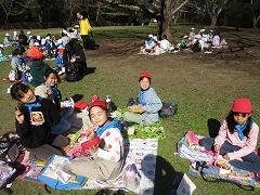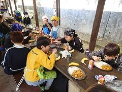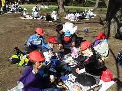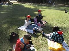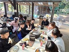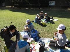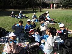 午前の部が終わると、待ちに待ったお昼ごはんです。風は冷たかったのですが、あたたかな日差しの下、みんなでおいしく食べました。