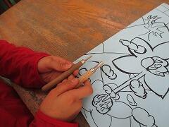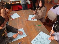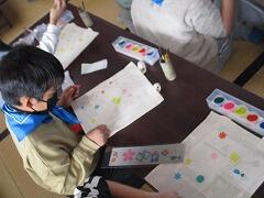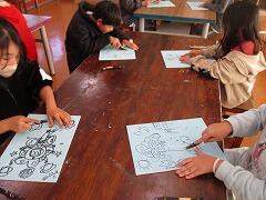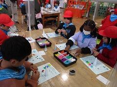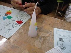 円すいのローソクにお気に入りの色のろうを付けていく作業なのですが、子どもたちは思い思いに熱心に取り組みました。