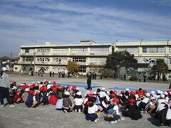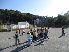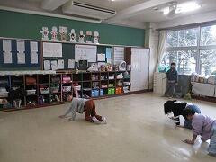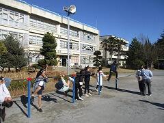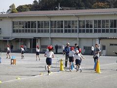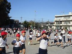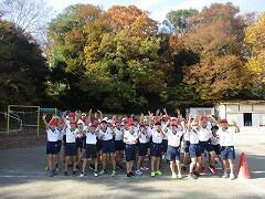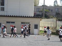 週3回の持久走練習では、寒さに負けず、音楽に合わせて元気に走る子どもたちの姿が見られました。がんばれ、子どもたち。