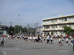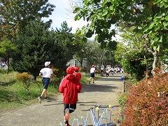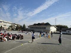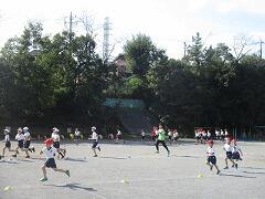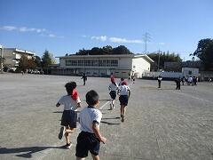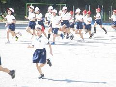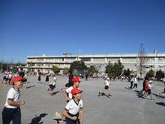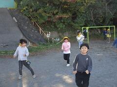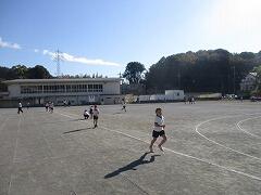 秋晴れのもと、元気に走る子どもたち。継続的に走ることで、走ることに慣れていってほしいです。