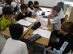 2年生はまち探検の準備を進めています。2クラスが混ざってグループをつくっています。