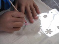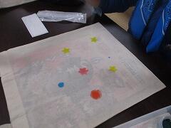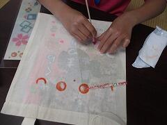内容は合羽摺り(かっぱずり)という、染料を使ったステンシルのようなものです。