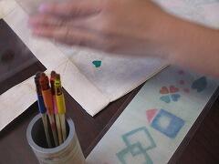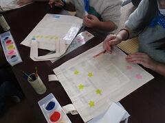 用意されたトートバックに思い思いの模様を色付けしていきます。