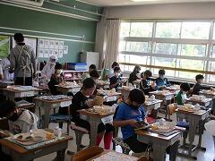 本校の給食室は校舎1階の廊下の脇にあり、窓ガラスから中の様子を見ることができます。ぜひ機会があったらのぞいてみてください。夏は暑くて、冬は寒い給食室ですが、子どもたちのため、教職員のために年間を通してがんばってくださっているみなさんの様子がよくわかります。