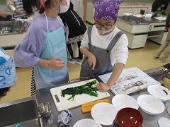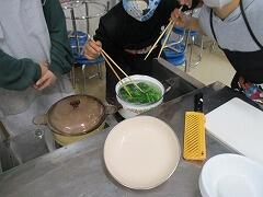 5年生のほうれん草のおひたしづくりとお米を炊く勉強です。