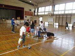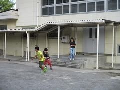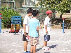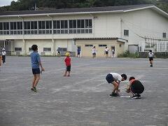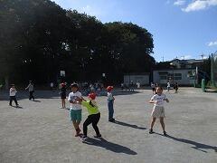 投げ方、受け取り方が難しい形のボールですが一生懸命に取り組みました。
