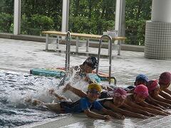 グループに分かれた子どもたちは、それぞれの場所で、元気に水泳指導に参加していました。とても楽しそうな様子が見られました。