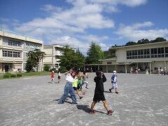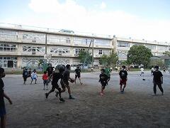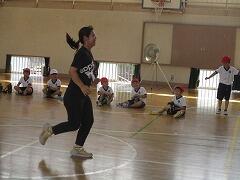 最後は試合形式です。前に投げないルール、陣地の考え方(オフサイド)、タグを取ったら「タグ!!」と大きな声で知らせる・・・など気にしなければならないことがいくつかあり、最初は戸惑う子どもたち。それでも少しずつ動きが良くなっていきました。
