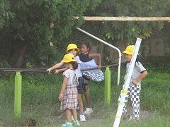 蒸し暑さは相変わらずでしたが、熱中症警戒アラートの発表はなかったので、久しぶりの体育、外遊びとなりました。