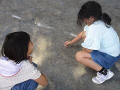 空書きには、学習の中に動きを取り入れるという意味もあります。座ったままの学習はつらいですからね。立って空書き、窓の方を向いて空書き、前にいる先生のおなかに空書き・・・。そのバリエーションは先生の発想次第で無限です。先生は、子どもに向かって鏡文字で一緒に空書きしながら、間違えて空書きしている子を発見することもできます。