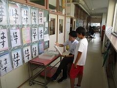 漢字の空書きをしている場面でした。「空書きがしっかりできるようになるまで、鉛筆は持たせない」というのは、漢字指導技術の一つです。