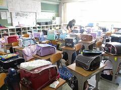 一次避難は机の下に。どのクラスもしっかりできていました。