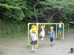 外での様子です。すっきりしない梅雨空が続いていますが、子どもたちはそんな空のもとでも元気に遊び始めました。
