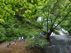 「湯滝って名前なのに、暖かくなーい」と冷たい水に触って叫んでる子もいました。
