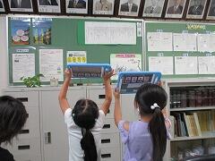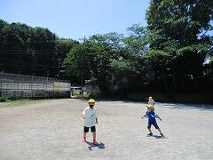 朝一番に養護教諭の森先生が、暑い時期のマスク着用について全校に放送で呼びかけました。そのあと私から外に出るときは帽子をかぶるよう話しました。業間休みには、きちんと帽子をかぶった子どもたちが元気に校庭に出てきました。