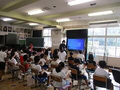 まず各教室などの場所で、両方の部活動の活動の様子や選手紹介の動画を見ました。
