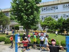 朝一番に養護教諭の森先生が、暑い時期のマスク着用について全校に放送で呼びかけました。そのあと私から外に出るときは帽子をかぶるよう話しました。業間休みには、きちんと帽子をかぶった子どもたちが元気に校庭に出てきました。