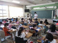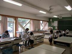 今日2時間目の様子です。全員6年生の担任ですが、1組の青木先生が4組に、2組の五十嵐先生が1組に、3組の田地野先生が2組に、4組の西村先生が3組で授業をしていました。