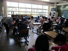 学校に到着したのは7時20分。まだ児童は登校していない・・・と思いながら歩いていると「おはようございます」と2年5年昇降口前からあいさつが聞こえました。