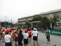 6年生向けでタグラグビーの指導にプロチームのNECグリーンロケッツが来校してくださいました。