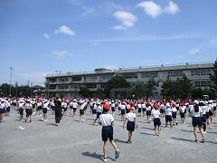 はじめの会では児童会の話、校長の話、歌、準備運動をします。とてもシンプルです。