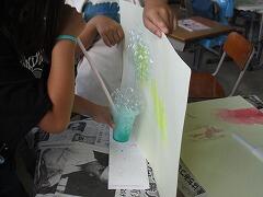 しゃぼんの泡を使って模様をつくるという活動です。
