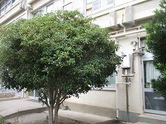 保健室前にあるキンモクセイが良い香りを漂わせています。
