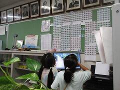 校長室にある入学式の写真を眺めるグループ。