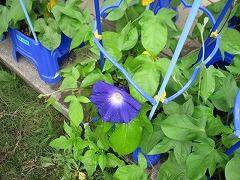 1年生が「校長先生、2組の朝顔が咲いているよ。」と声をかけてきました。