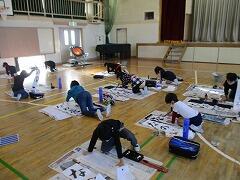 3年生の席書会でした。マスク着用の上、向きの工夫をして、体育館で行いました。3年生以上の席書会は今日で終了です。