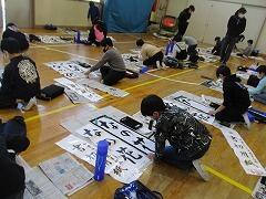 心を落ち着けて、緊張して紙に向きあう、そういう時間が年の初めに大切なのです、そういう昔からの行事です。いつもより大きな半紙に向かって一生懸命書き初めに取り組んだ3年生です。