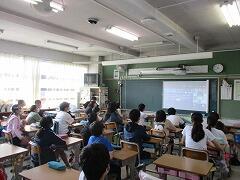 対象は6年生児童と希望保護者のみなさんです。校長室から発信し、子どもたちは各教室でオンラインで参加、保護者のみなさんはそれぞれの場所で参加という形で行いました。