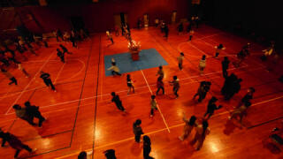 キャンドルファイヤーです。施設の体育館で行いました。