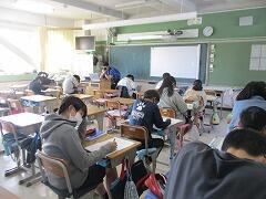 写真はありませんが、給食中に各教室の様子を見て回りました。各クラス、子どもも先生も黙って給食を食べていました。見慣れた風景ですが、全員が前を向いて食べています。自分を守るため、友達を守るために言われたことを守って生活している子どもたち。