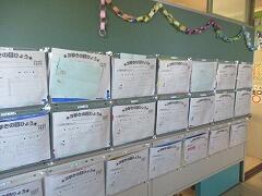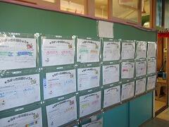 各クラスの廊下の掲示物、「三学期の目標」が少しずつ増えてきました。