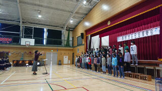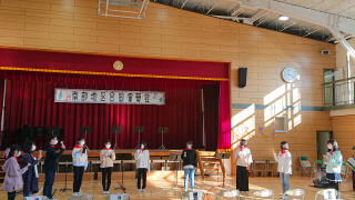 逆井小のマスク着用のままの6年生の合唱は、マスクの下の大きな口が想像できるようなしっかりした歌声でした。