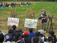 現地では、米づくりの今と昔、品種などを学ぶ座学、