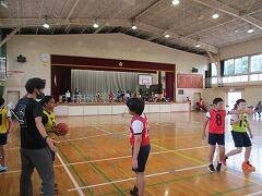 本校のミニバスケットについては、対外試合もないまま、それでも練習を積み上げてきた本校5・6年生のために引退試合を行いました。シュートの瞬間に密にならないように「台形の中ではシュートを打たない」などソーシャルディスタンスを意識したローカルルールも取り入れて行いました。