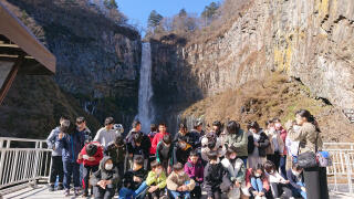 日本三名漠の1つの華厳の滝に来ました。たくさんの学校や一般の方々が訪れていました。
