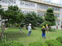 何をしているかわかる集団とよくわからない集団がありますが、それはそれ。子どもたちは楽しげに遊びに興じています。校庭の隅から隅まであちこちに子どもたちがいます。
