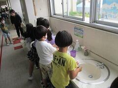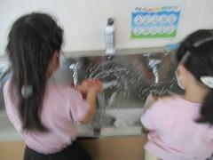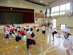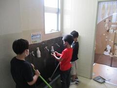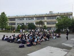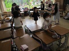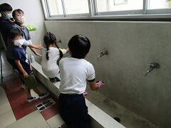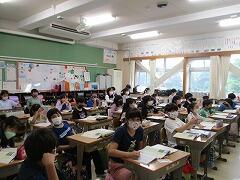 業間休みに入ったタイミングで「熱中症の心配があるので、室内、室外どちらで過ごすにしても水分を補給してください。外に出て暑さを感じたときにマスクを外して構いません。遊び終わった後は、顔や腕を水で洗い体を冷やしましょう。自分の命は自分で守りましょう。」という放送を流しました。