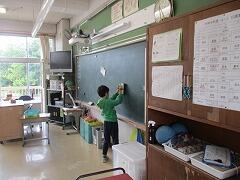 今日も、外に置いてある黒球式の気温計からは「ピピピピピピ」というアラーム音が時々鳴っていました。気温計とにらめっこしながら、子どもたちが安全に活動できるように教頭、養護教諭、教務主任等と情報を共有しています。