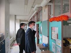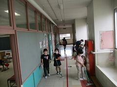 校舎内の換気をする関係で、あちこちの窓が開いています。廊下の窓から温風、教室の窓からも温風が入ってきます。外で日差しを浴びているほどではありませんが、廊下もなかなかの暖かさです。それに伴ってたくさんの子どもたちがいる教室も思ったようには冷えません。