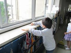 教室のエアコンは稼働していますが、換気のために教室の窓や廊下の窓を開けているため、そこから温風が入ってくる関係で、室温がなかなか下がりません。大変やっかいです。