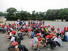 1年生は黄色い帽子をかぶっています。安心ですね。