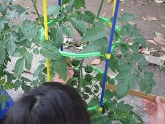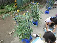 大きく育った2年生の鉢植えが風で倒れてしまうので、廊下に避難させました。倒れるたびに、せっかく成長しているミニトマトが落ちてしまうのは悲しすぎます。これで、もう安心。